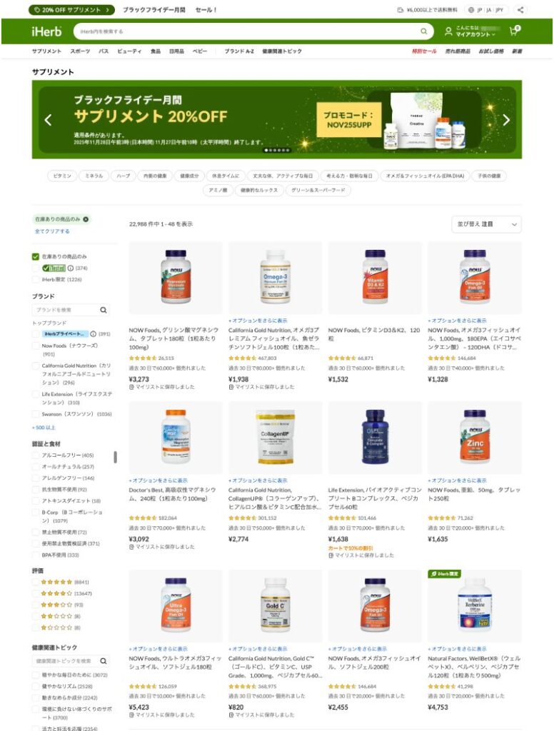 iHerbのサイトに遷移したら、通常通りサプリメントやその他の商品を選び、購入手続きを進めます。
